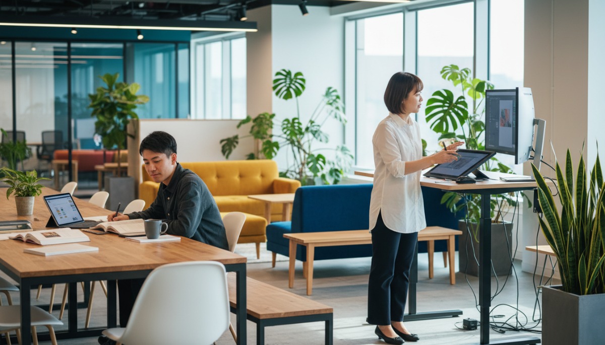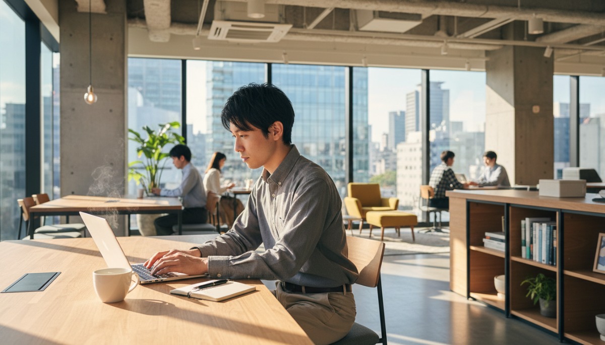 まず、設備面。カフェではWi-Fiの速度に不満を感じたり、コンセントの有無を気にしたりしがちですが、コワーキングスペースはビジネス利用を前提とした高速ネット環境と全席電源が完備されています。次に、心理的な「切り替え」の効果です。自宅には誘惑が多く、図書館は静かすぎてPCの打鍵音に気を遣いますが、適度な集中感と活気があるコワーキングスペースは、脳を瞬時に「作業モード」へと導きます。